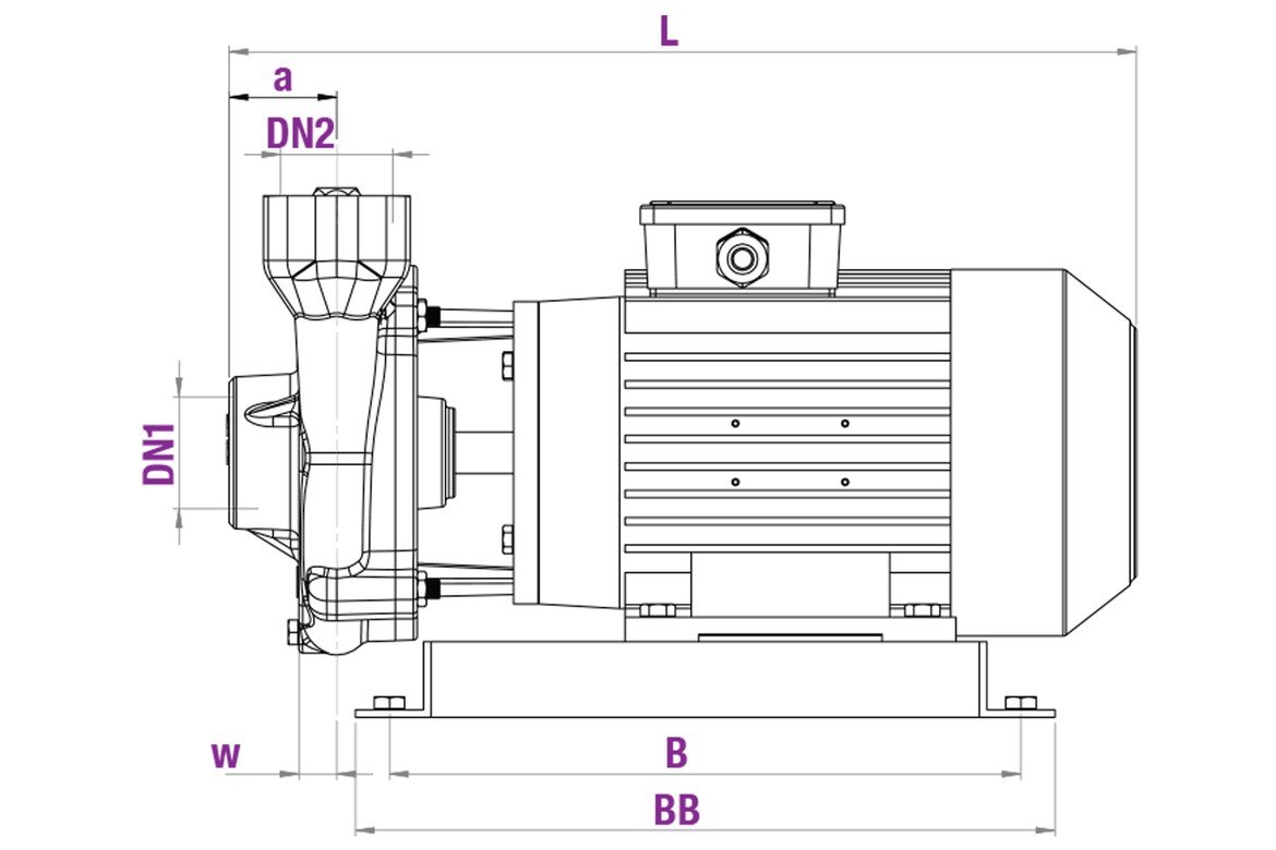 | ثلاثية الطور | حصان | كيلو وات | الإمتصاص DN1 | الإمتصاص DN2 | L | N | h1 | h2 | h | a | w | A | AB | B | BB | ~1 | ~3 | |