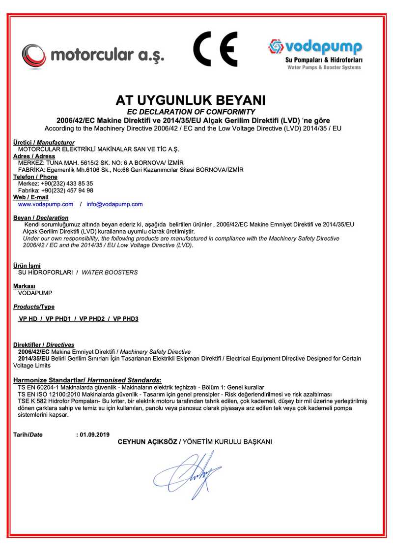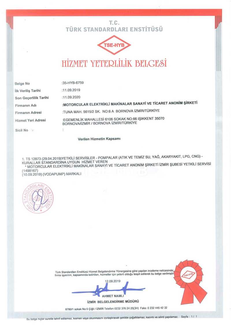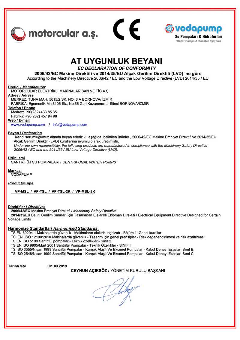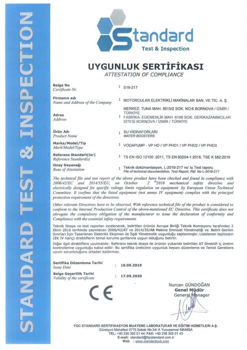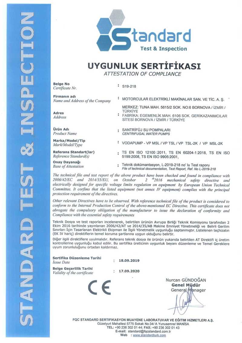 Attestation Of Compliance Pump